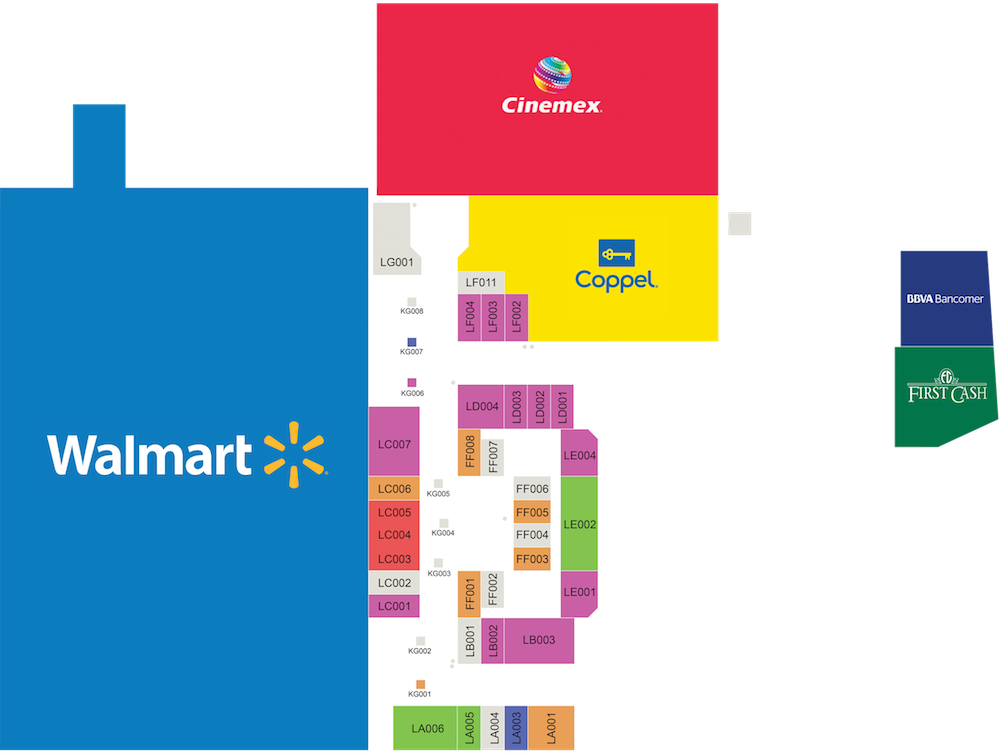GNC, Telcel, Zapaterias Tropic, OpticasAmericanas, D Luo, Dportenis, ZapateriaMappiGenaro, Emilio’s Gull, Long Hin, Delizicrepas, Coppel, Movistar.