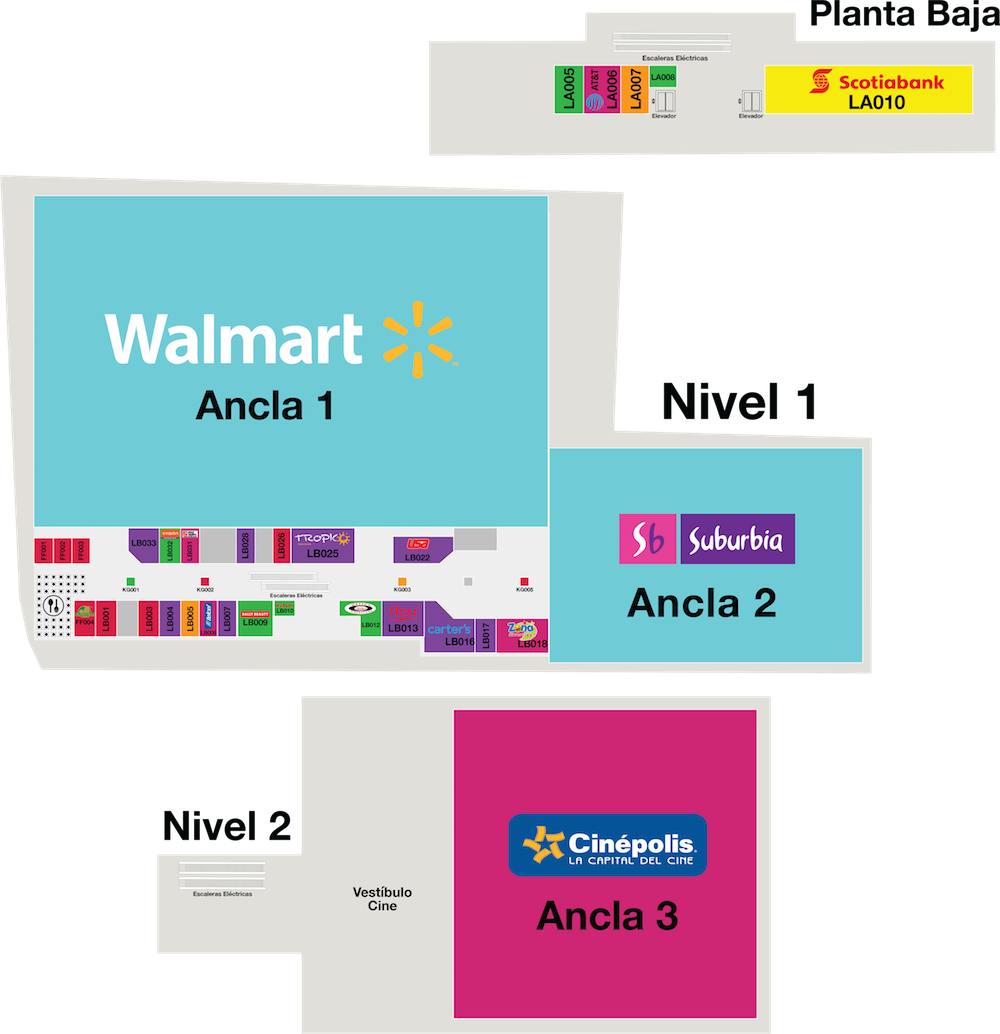 Italian Coffee, Constanzo, Sally Beauty, Zapaterías Tropic, Flexi, GNC, USA Shoes, Ópticas Americana, Más Visión, Carters, AT&T, Telcel