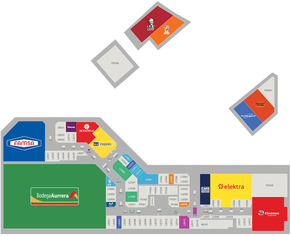 Cinemex, Salvaje Tentación, KFC, Sportown Fitness Club, Little Caesar´s, Italika