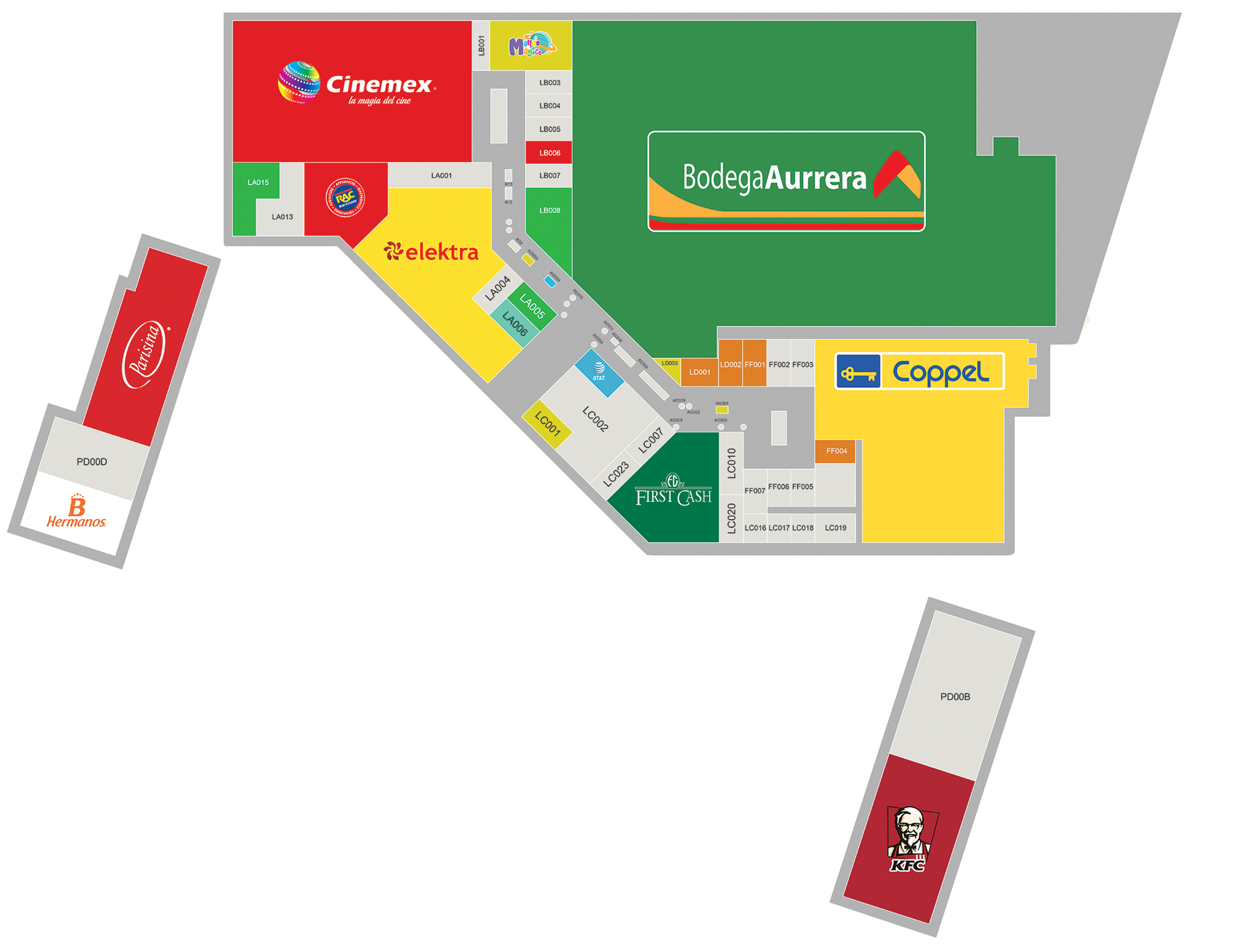 First Cash, AT&T, Parisina, Micronegocio Azteca, Telcel, Mr. Pizza, Muebleria Villareal, Rent a Center, Elektra